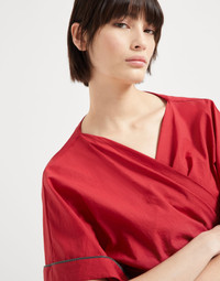 Techno cotton poplin kimono-style top with shiny trims