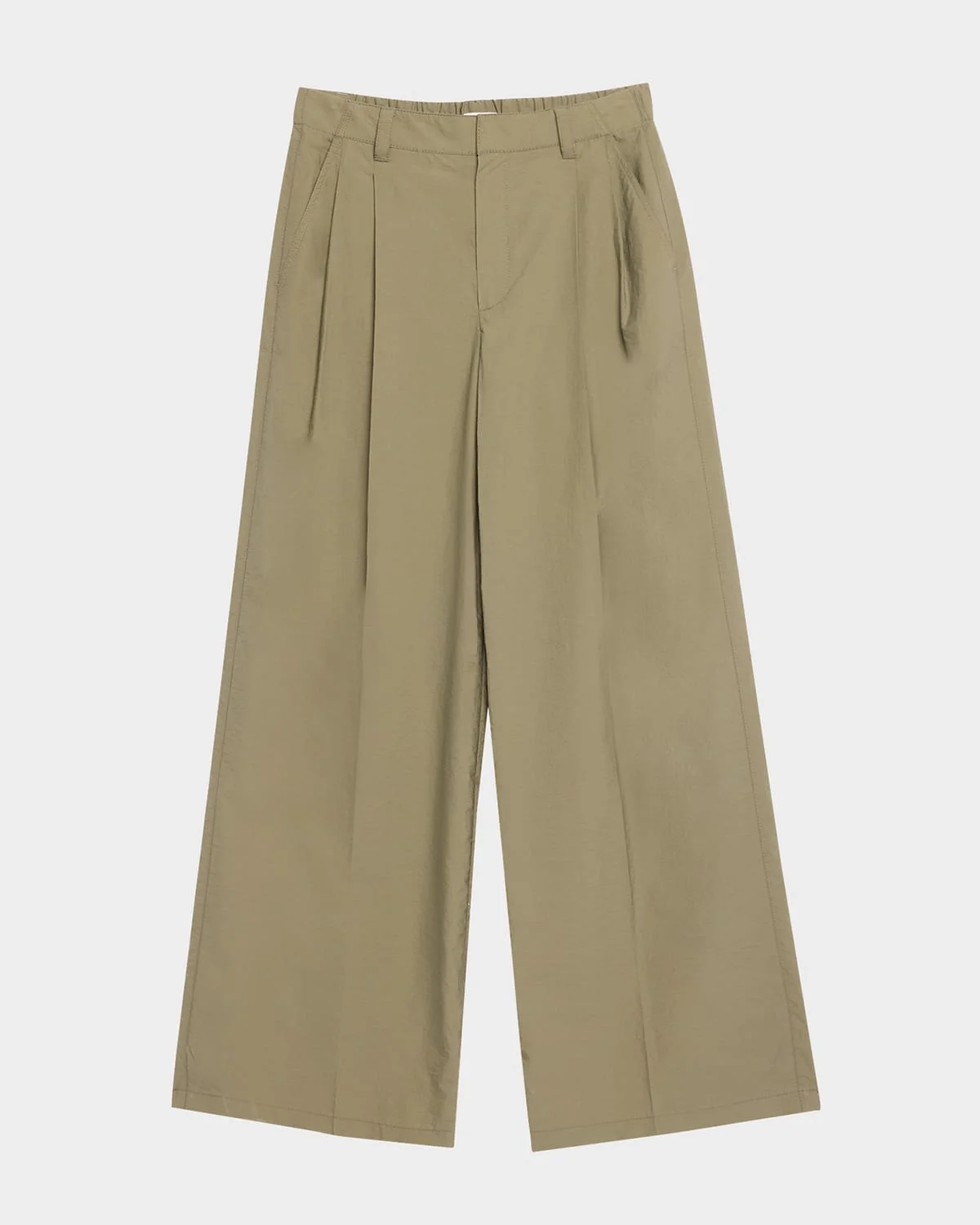 Techno Cotton Poplin Pleated Wide-Leg Sartorial Pants