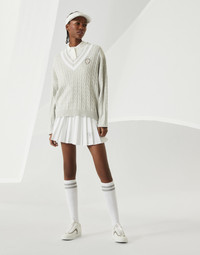 A sporty attitude and iconic elements define the style of the Pleated skirt. This piece, designed for both sport club and game moments, is characterized by flat pleating, for a very feminine feel. The practical drawstring waistband is highlighted by colored details, while the integrated technical jersey shorts ensure maximum comfort even on the court. The iconic Solomeo heraldic coat of arms complements the look of the garment. MATERIALS Techno poplin is an ultra-lightweight fabric characterized by the presence of a synthetic fiber that makes it comfortable and extremely pleasant to wear, ideal for sportswear. DETAILS Pull-up skirt Built-in shorts 100% POLYESTER