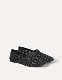 Techno raffia and calfskin flats