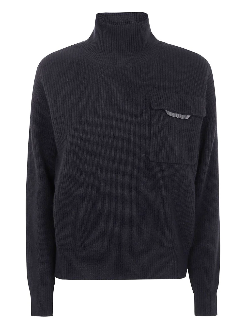 high-neck pocket sweater Highlights - Black - Ribbed knit - High neck - Patch pocket - Pocket trim - Long sleeves Made in Italy Composition Cashmere 100% Washing instructions Read Manufacturer Guidelines