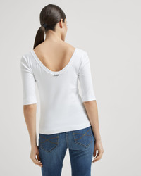 Refined materials and precious details enrich the versatile style of this stretch cotton ribbed jersey T-shirt. An essential element of a woman’s wardrobe, the garment is characterized by fitted proportions and a wide neckline. The shiny monili embroidery completes the design with a delicate sparkle in true Brunello Cucinelli style. MATERIALS A small percentage of spandex perfects the comfort of the lightweight and soft ribbed cotton jersey. DETAILS Wide neckline Regular shoulder Regular sleeve Nickel-free monili decoration 94% COTTON, 6% ELASTANE