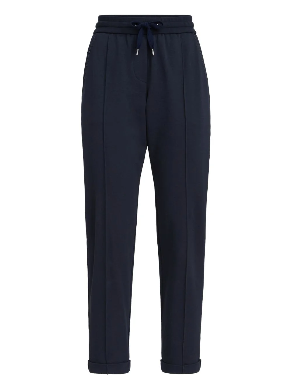 drawstring-fastening trousers Highlights - Blue - Drawstring waist - Rolled-up cuffs - Lightweight - Side pockets - Pintuck detail Made in Italy Composition Cotton 98%, Elastane 2% Washing instructions Read Manufacturer Guidelines