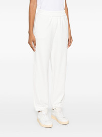 jersey track pants Highlights - White - Jersey texture - Elasticated waistband - Two side slit pockets - Two rear welt pockets - French terry lining - Elasticated ankles - Straight leg Made in Italy Composition Acetate 74%, Silk 26% SIZE & FIT Model measurements Height 5 ft 10 in(1.78 m) Bust/Chest 32.67 in(83 cm) Hips 35.43 in(90 cm) Waist 23.22 in(59 cm) FittingInformation Designed for a relaxed tapered cut, these trousers allow for a close fit at the waist and offer a loose fit at the thighs, with a closer fit toward the ankles The elasticated waist and hem offer a secure, comfortable fit Made from a midweight non-stretch fabric, this piece offers minimal elasticity when worn This piece fits true to size – take your usual size