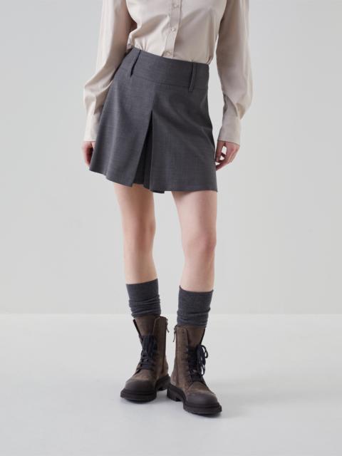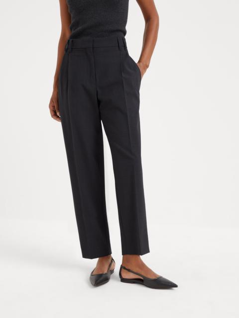 Tropical luxury wool high waist wide trousers with monili