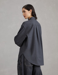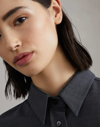 Refined Tropical Luxury wool enriches this shirt with an impeccable, elegant appearance. The style features essential lines updated in a contemporary way with slightly full, relaxed sleeves. The iconic monili detail embellishes the collar with a sparkling note. MATERIALS The lightweight fabric combines the virgin wool natural fiber with a percentage of synthetic to provide added comfort. DETAILS Mother of pearl button closure Classic collar Cuffs have one mother of pearl button Nickel-free monili decoration 75% VIRGIN WOOL, 23% NYLON, 2% ELASTANE