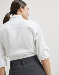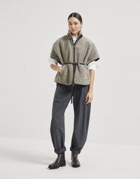 A relaxed attitude and tailored details define the style of these tropical luxury wool slouchy trousers. The fabric’s light texture complements the garment’s lines, which fall softly down the leg, tapering slightly at the ankle, creating a very subtle curve. Classic menswear elements such as the double pleats and rear welt pockets elevate the silhouette, while the iconic shiny monili embroidery completes the trousers with a feminine sparkle in true Brunello Cucinelli style. MATERIALS The lightweight fabric combines the virgin wool natural fiber with a percentage of synthetic to provide added comfort. DETAILS Side zip closure Slanted front pockets Back welt pockets Double pleat Cuffed hem Unlined Nickel-free monili decoration 75% VIRGIN WOOL, 23% NYLON, 2% ELASTANE