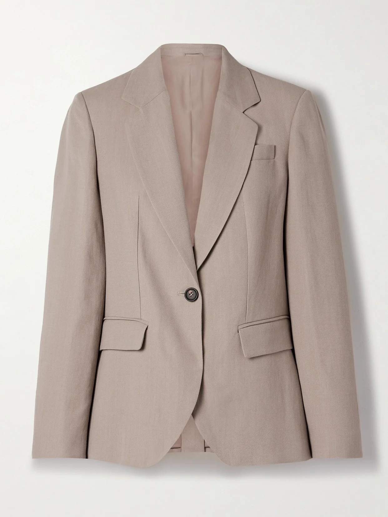 The tailors at Brunello Cucinelli's workshop in Solomeo, Italy, are masters at their craft. This blazer is made from twill woven with a touch of linen for added lightness. Wear yours open over a tank and jeans or flowy dress.