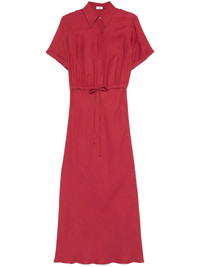 twill maxi dress Highlights - Red - Front button placket - Turn-up cuffs - Elasticated drawstring waistband - Side slit Made in Italy Composition Eco Brass 100%, Viscose 73%, Linen/Flax 27% SIZE & FIT Model measurements Height 5 ft 11 in(1.8 m) Bust/Chest 32.67 in(83 cm) Hips 35.82 in(91 cm) Waist 25.98 in(66 cm) FittingInformation Designed for a loose fit at the chest with a close fit over the waist and hips The adjustable drawstring means that you can adjust this piece’s fit to suit your comfort and preference Made from a midweight non-stretch fabric