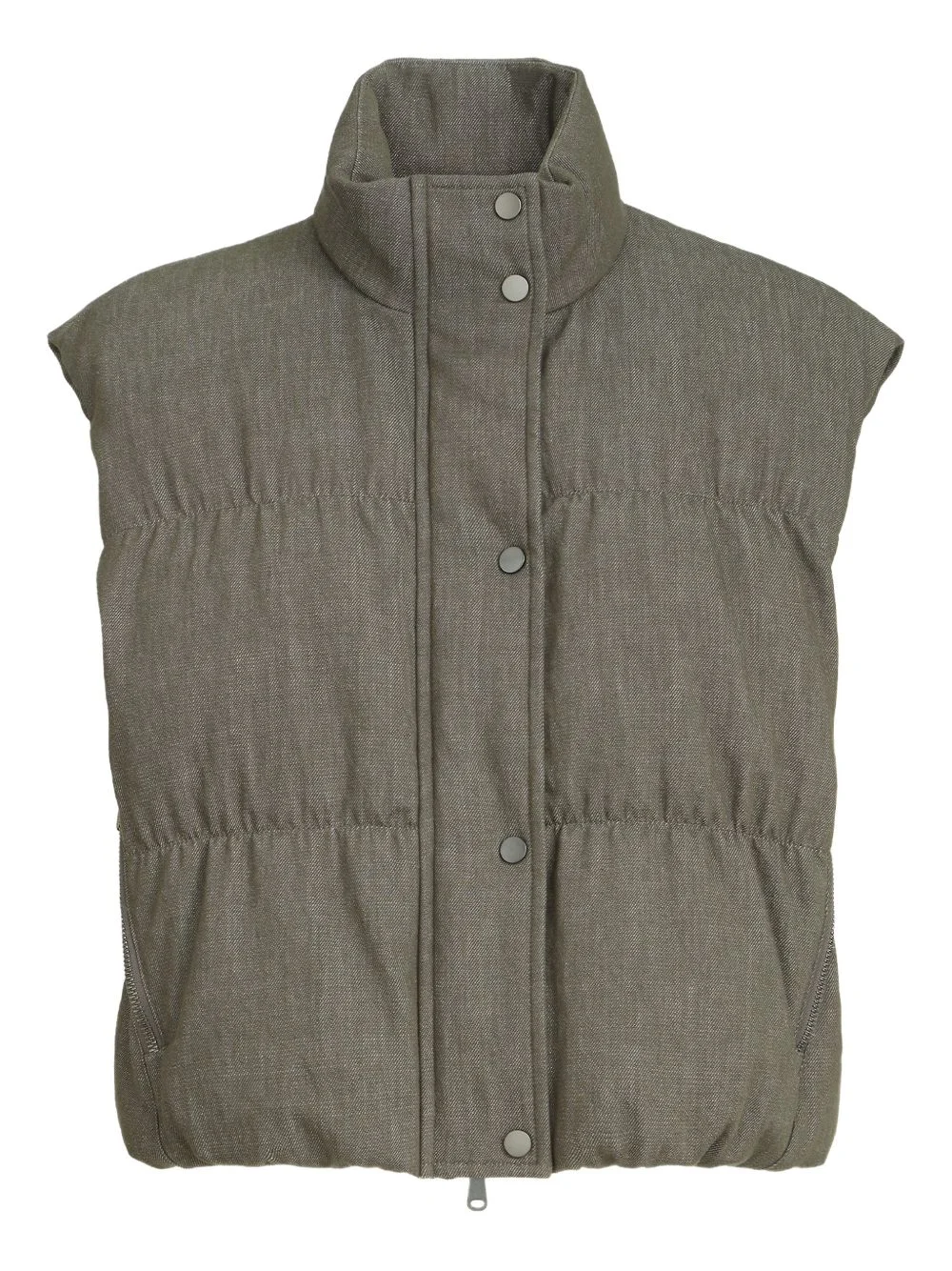 twill-weave vest Highlights - Olive green - Twill-weave texture - Zip fastening - Snap fastening Made in Italy Composition Cotton 100% Washing instructions Read Manufacturer Guidelines