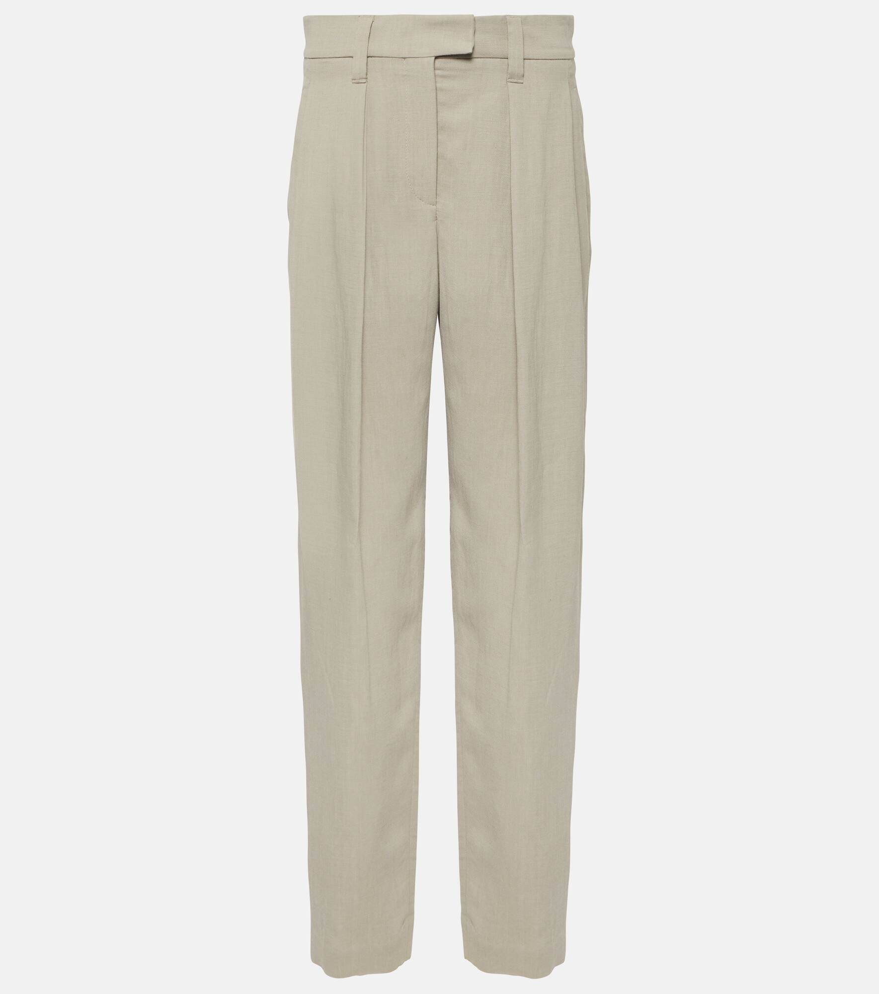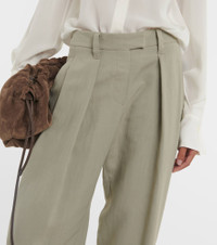 Product Details - Material: 73% viscose, 27% linen - Belt loops - Care instructions: dry clean - Made in Italy - Designer color name: Jackfruit - Lining: 36% polyester, 32% acetate, 32% cupro - Closure: zipper fly, button and hook fastenings - Pockets: side slit pockets, back pockets - Item number: P00903099 Size & Fit - True to size - Non-stretchy fabric - Wide-leg - High-waisted - The model seen in the picture is 178cm-5'10" and wearing a size IT 40
