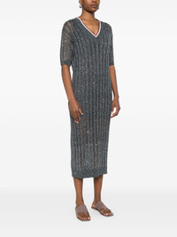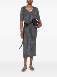 v-neck dress Highlights - Grey - V-neck - Contrasting collar - Short sleeves - Straight hem - Semi-sheer construction Made in Italy Composition Polyester 100%, Linen/Flax 94%, Nylon 6% Washing instructions Hand Wash