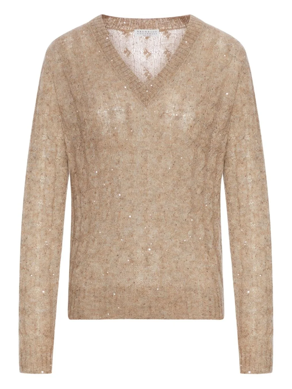 V-neck sweater Highlights - Beige - V-neckline - Long sleeves - Sequin embellishment - Ribbed hem Made in Italy Composition Mohair 100%