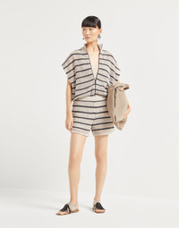 Essential and versatile, this stretch cotton jersey top is enriched with Brunello Cucinelli’s distinct details. A delicate sparkling note stands out along the outer edge of the shoulder straps thanks to fine rows of shiny monili embroidery that complete this piece with a distinctly feminine detail. MATERIALS A small percentage of spandex makes the lightweight and soft cotton jersey comfortable and pleasant to wear. DETAILS V-neck Low back neckline at back Nickel-free monili decoration 93% COTTON, 7% ELASTANE