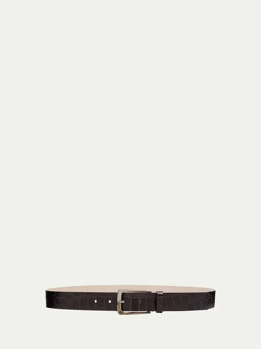 Brunello Cucinelli vintage effect semipolished textured cowhide leather belt Adjustable fit Made in Italy