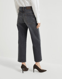 A casual attitude and precious details come together in these new authentic denim square trousers. The garment features a boxy silhouette with a cropped cut that falls straight down the leg, in a perfect balance between comfort and style. The shiny monili embroidery adds a feminine sparkling note in true Brunello Cucinelli style. MATERIALS The new Authentic cotton fabric maintains the characteristically full, even texture of denim, but is also pleasantly soft and comfortable to wear. The lived-in look and special nuanced effect of the color have been created thanks to various dyes and washes. As a result, its hue may evolve and naturally lighten with washing and daily use, refined traits of the fabric itself. DETAILS Zip closure with button Front patch pockets with watch pocket Back patch pockets Nickel-free monili decoration 100% COTTON