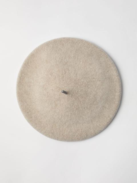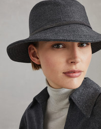 The sporty lines of this Bucket hat are paired with Brunello Cucinelli’s refined materials and iconic details. The uniform, compact fabric is combined with a band embellished with a shiny monili embroidery that runs around the circumference of the accessory with a note of feminine sparkle. MATERIALS A material of timeless elegance, the virgin wool fabric features a very fluid hand and a smooth, compact texture. A silk-blend crepe lining completes the garment and provides added comfort. DETAILS Lined Nickel-free monili decoration 100% VIRGIN WOOL