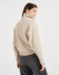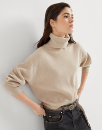 Virgin wool, cashmere and silk English rib turtleneck sweater