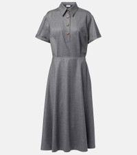 Crafted from wool, this shirt dress from Brunello Cucinelli features a polished silhouette with a softly pleated skirt and structured top. The design is complete with charming brass buttons at the front. Product Details - Material: 100% virgin wool - Care instructions: dry clean - Made in Italy - Designer color name: Mid Grey - Item color: gray - Lining: 65% acetate, 35% polyester - Details: 100% brass - Closure: partially buttoned front, zipped side - Collar: classic (Straight point) - Partially lined - Item number: P01083450 Size & Fit - True to size - For a closer fit, we recommend taking one size down - Dropped shoulders - Cinched waist - Non-stretchy fabric - The model seen in the picture is 178cm-5'10" and wearing a size XS