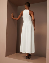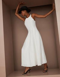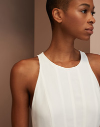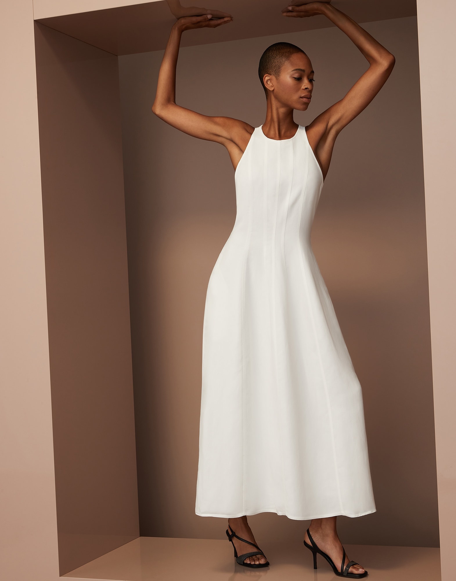 Refined materials and classic lines come together in this Fluid twill dress. Characterized by a subtle play of pleating that brings the structure of a corset to mind, the top is more fitted to the body, while the skirt has a light, fluid appearance, thanks to the texture of the viscose and linen-blend fabric. MATERIALS The combination of viscose and linen gives this twill a lightweight, flowing yet slightly crushed appearance. The characteristics of the fabric are further highlighted by the nuanced color variations. DETAILS Crew-neck Concealed zip closure Silk-blend crêpe lining Flared hem 73% VISCOSE, 27% LINEN