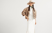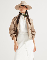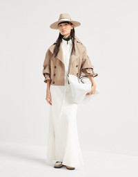 Shiny details and essential lines enrich the refined attitude of this viscose and linen Fluid twill dress. The top of the dress is inspired by the sporty feel of the polo shirt, while the skirt features a straight, fluid silhouette with deep slits for a relaxed, very feminine elegance. The elasticized, drawstring waist introduces a casual detail, while the iconic shiny monili embroidery on the back adds a sparkling note in true Brunello Cucinelli style. MATERIALS The blend of viscose and linen gives the twill a lightweight, very fluid appearance that is slightly crisp at the same time. DETAILS Half-length opening with mother of pearl buttons Classic collar Elastic waistband with drawstring Side vents at bottom Unlined Nickel-free monili decoration 73% VISCOSE, 27% LINEN