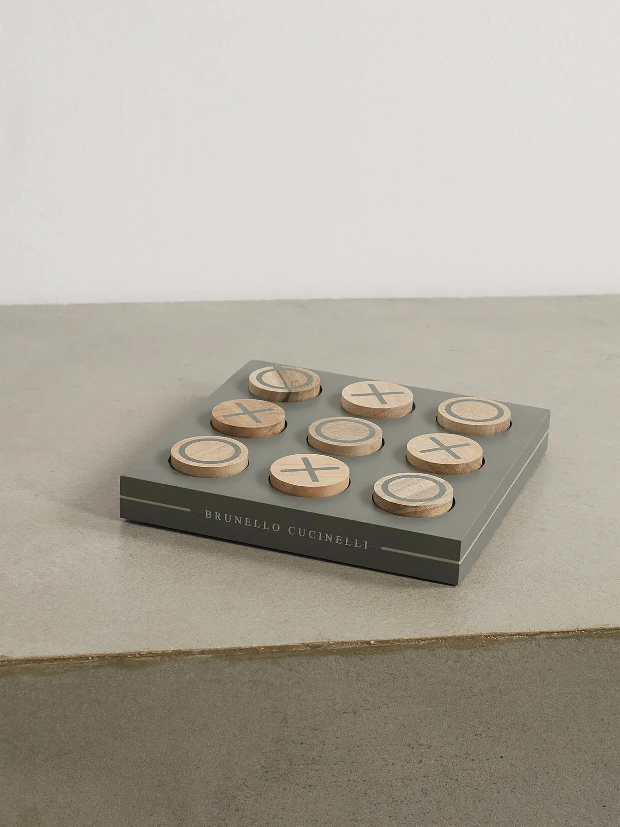 The base of Brunello Cucinelli's noughts and crosses board is made from Krion®, an innovative material that resembles stone but feels warm to the touch. The set comes with magnetic walnut wood counters that will complement the interior of any room.