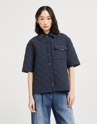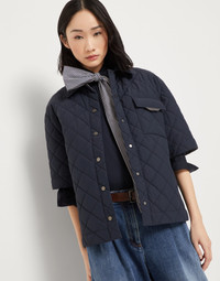 An aesthetic inspired by the world of down jackets gives an elegant charm to this new water-resistant techno cotton outerwear jacket. The short-sleeved garment showcases a sporty quilted design, enhanced by the light Thermore® padding which adds volume and warmth. A monili detail illuminates the chest pocket with a sparkling note in true Brunello Cucinelli style. MATERIALS The refined techno cotton fabric combines the lightness and breathability of the natural fiber with a resistant and innovative structure to offer optimal comfort. The fabric is enriched with Thermore® padding, a high-quality technical material that ensures protection in the cold. The nylon lining finishes the style. DETAILS Snap closure Water-resistant nylon lining Upper patch pocket with flap and button Thermore® padding Nickel-free monili decoration 74% NYLON, 26% COTTON