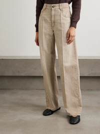Brunello Cucinelli's jeans are made from light-brown denim that's faded and whiskered for a worn-in feel. In a classic five-pocket construction, they have a high-rise and fall to relaxed, wide legs. Wear yours with a tucked-in tee or cardigan and ballet flats. Size & Fit - Fits true to size, however those who are between sizes should take the smaller size - High-rise, cut for a wide-leg fit - Mid-weight, non-stretchy denim - Size IT 38 jeans have an inside leg of 32"/ 82cm - Model is 175cm/ 5'9" and is wearing an IT 38 Model measurements: - Bust: 81cm/ 32" - Waist: 62cm/ 24.5" - Hip: 89cm/ 35" Details & Care - Light-brown denim - Button and concealed zip fastening at front - 100% cotton - Machine wash