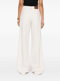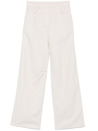 straight-leg jeans Highlights - Ecru - Concealed front button, hook and zip fastening - Belt loops - Classic five pockets - Logo patch to the rear Made in Italy Composition Outer: Leather 100%, Eco Brass 100%, Cotton 60%, Linen/Flax 40% Lining: Cotton 100% SIZE & FIT Model measurements Height 5 ft 10 in(1.77 m) Bust/Chest 31.88 in(81 cm) Hips 36.22 in(92 cm) Waist 24.01 in(61 cm) FittingInformation Designed with a wide leg cut, these jeans allow for a close fit at the waist and offer a loose and roomy fit over the leg Sturdy and hard-wearing, this denim piece offers no stretch Washing instructions Machine Wash