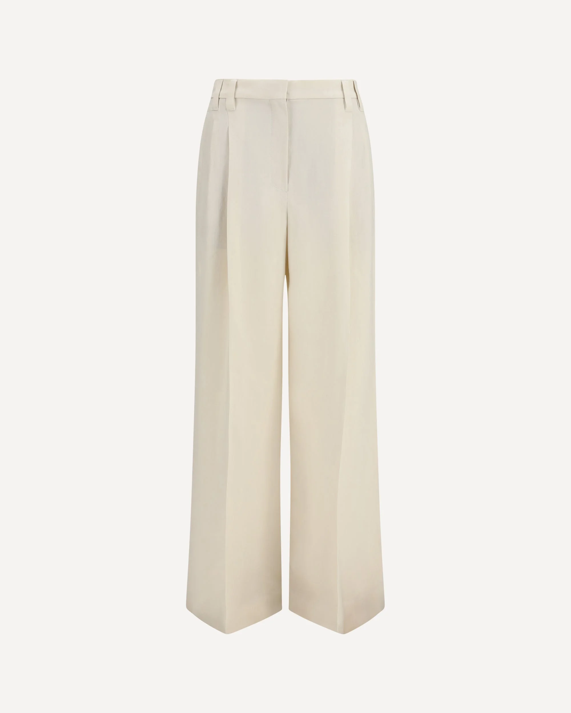 The wide Pants in fluid twill by Brunello Cucinelli are characterized by wide volumes and a straight leg, with double front pleats that define the tailored line the entire leg. The fine fluid twill is a fabric that is fluid yet structured, ensuring comfort and a regular fit. They feature a zip closure with metal hooks and a counter button, front American pockets, rear patch pockets, and a plain hem. The iconic nickel-free monili decoration by Brunello Cucinelli adds a distinctive detail. These trousers are elegant and suitable for business, formal, and smart casual outfits. DETAILS - Sku: MH126P9155_C579 - Season: SS26 - Fit: Regular - Composition: GENERAL 72% Viscose 28% Linen - MADE IN ITALY