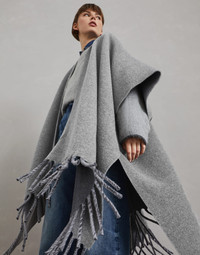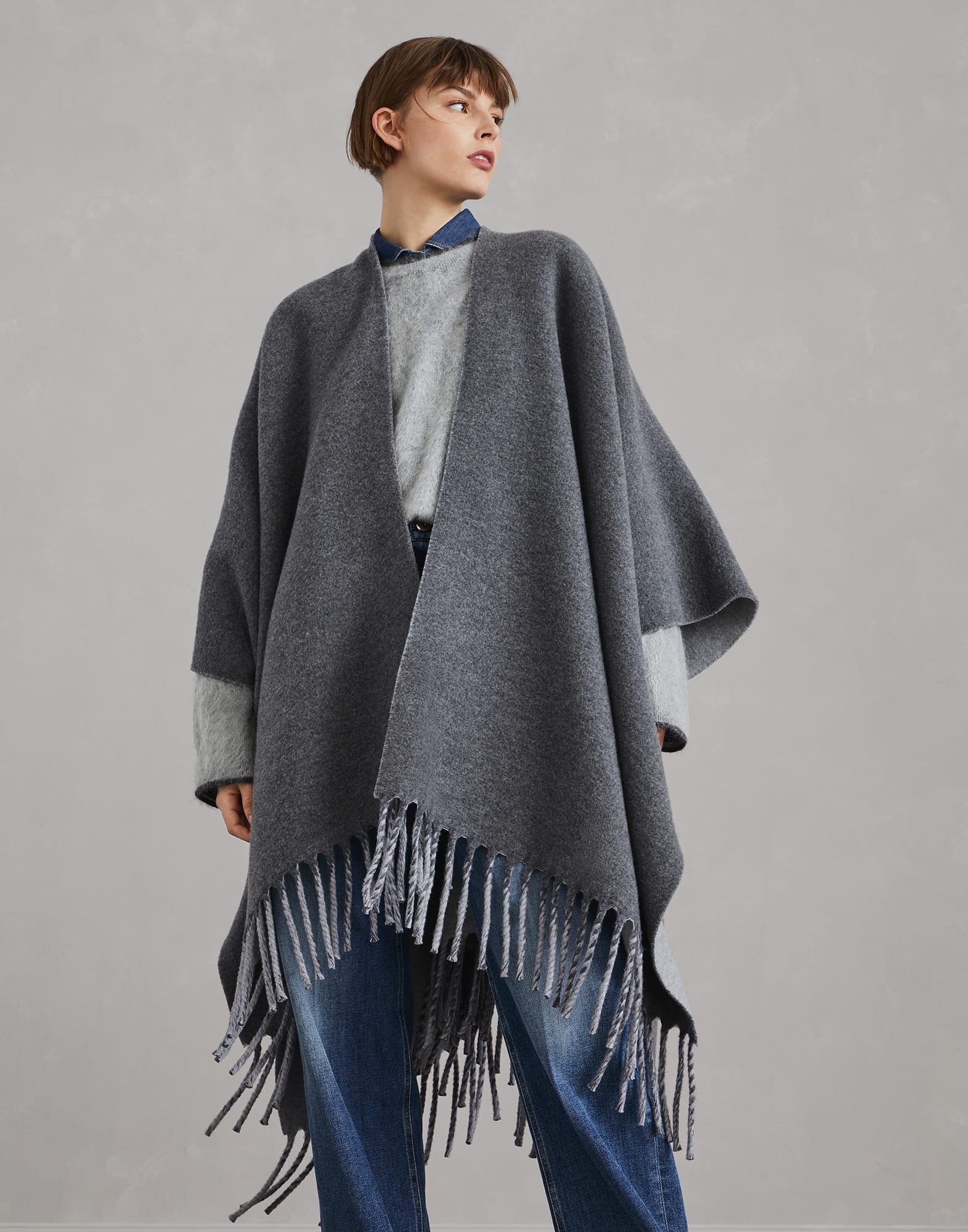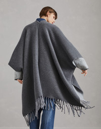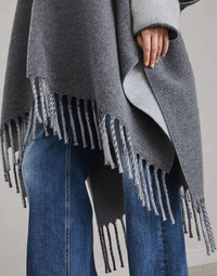 This double knit poncho conveys the perfect balance between cozy comfort and timeless style. The refined double knit is crafted with two layers of fabric bonded together to create a garment with a compact texture that is extraordinarily soft to wear. The unconstructed wide, fluid silhouette drapes over the body and will follow every move with an elegant naturalness. MATERIALS Two thin layers of wool and cashmere fabric are crafted together through a complex manual process combined with machine work. The result is a warm, compact and cozy fabric that showcases the same appearance on both sides. DETAILS Reversible Hem with fringe Special workmanship 60% WOOL, 40% CASHMERE