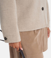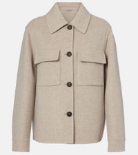 Brunello Cucinelli's designs are created in Solomeo, a medieval hamlet whose art and traditions are woven into the house's every fiber. Made from a sumptuous blend of wool and cashmere, this overshirt is complete with a pointed collar and two flap pockets. Product Details - Material: 90% wool, 10% cashmere - Care instructions: dry clean - Made in Italy - Designer color name: Beige Freddo - Item color: beige - Lining: 74% acetate, 26% silk - Contains non-textile parts of animal origin - Closure: buttoned front - Cuff: buttoned - Pockets: flap chest pockets - Item number: P01054341 Size & Fit - True to size - Dropped shoulders - Designed for a loose fit - Non-stretchy fabric - Falls below the hip - The model seen in the picture is 178cm-5'10" and wearing a size IT 40