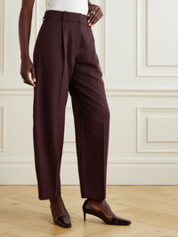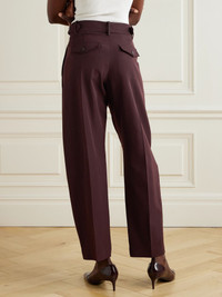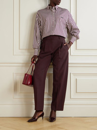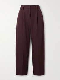 Pleated wool and cotton-blend twill tapered pants Burgundy