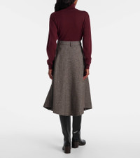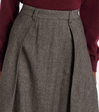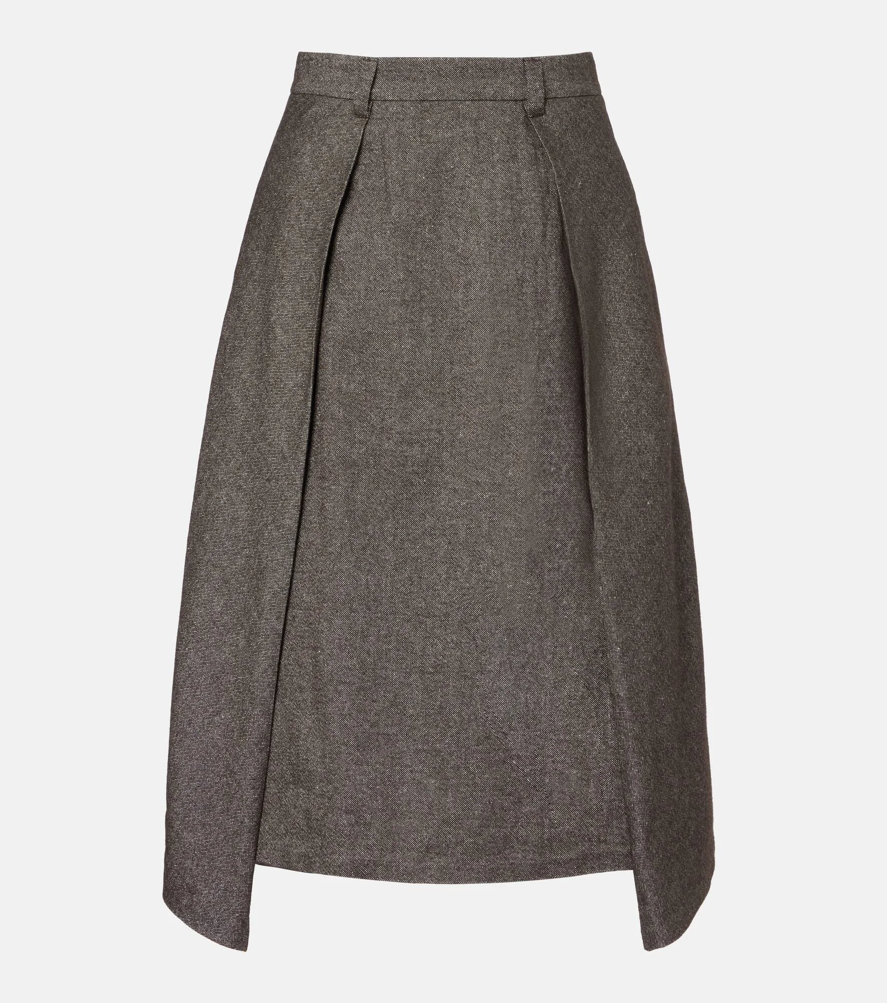 This midi skirt from Brunello Cucinelli is crafted from a soft wool and linen blend. Perfect for elevated everyday wear, this piece features side slit pockets, belt loops, and a zip side closure. Product Details - Material: 45% wool, 37% linen, 16% polyamide, 2% polyester - Care instructions: dry clean - Made in Italy - Designer color name: Marrone/Panama/Argento - Item color: brown, beige - Details: 100% brass - Lining: 65% acetate, 35% polyester - Closure: zipped side - Pockets: side slit pockets - Belt loops - Fully lined - Item number: P01054267 Size & Fit - True to size - Non-stretchy fabric - Sits low on the hips - Height of model is 174cm-68.5" and wears a size IT 40