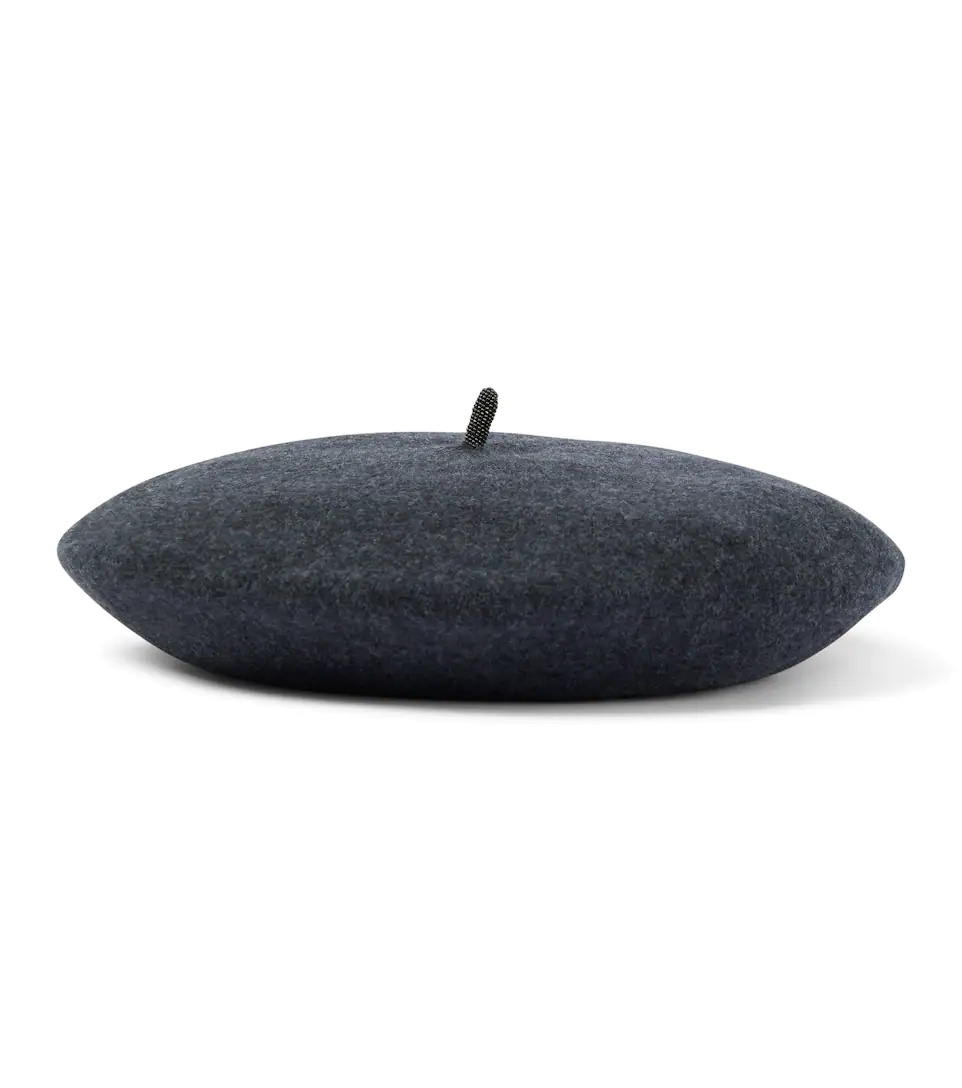 Meticulously hand-applied monili beads grace the top of this gray beret from Brunello Cucinelli. It's knitted from slightly fuzzy woolen yarns, in line with the brand's exacting production standards. Product Details - Care instructions: do not wash - Details: 100% brass - Material: 100% wool - Made in Italy - Item number: P00704804 Size & Fit - Circumference size S 56cm-22" - Circumference size M 57cm-22.5" - Circumference size L 58cm-23"