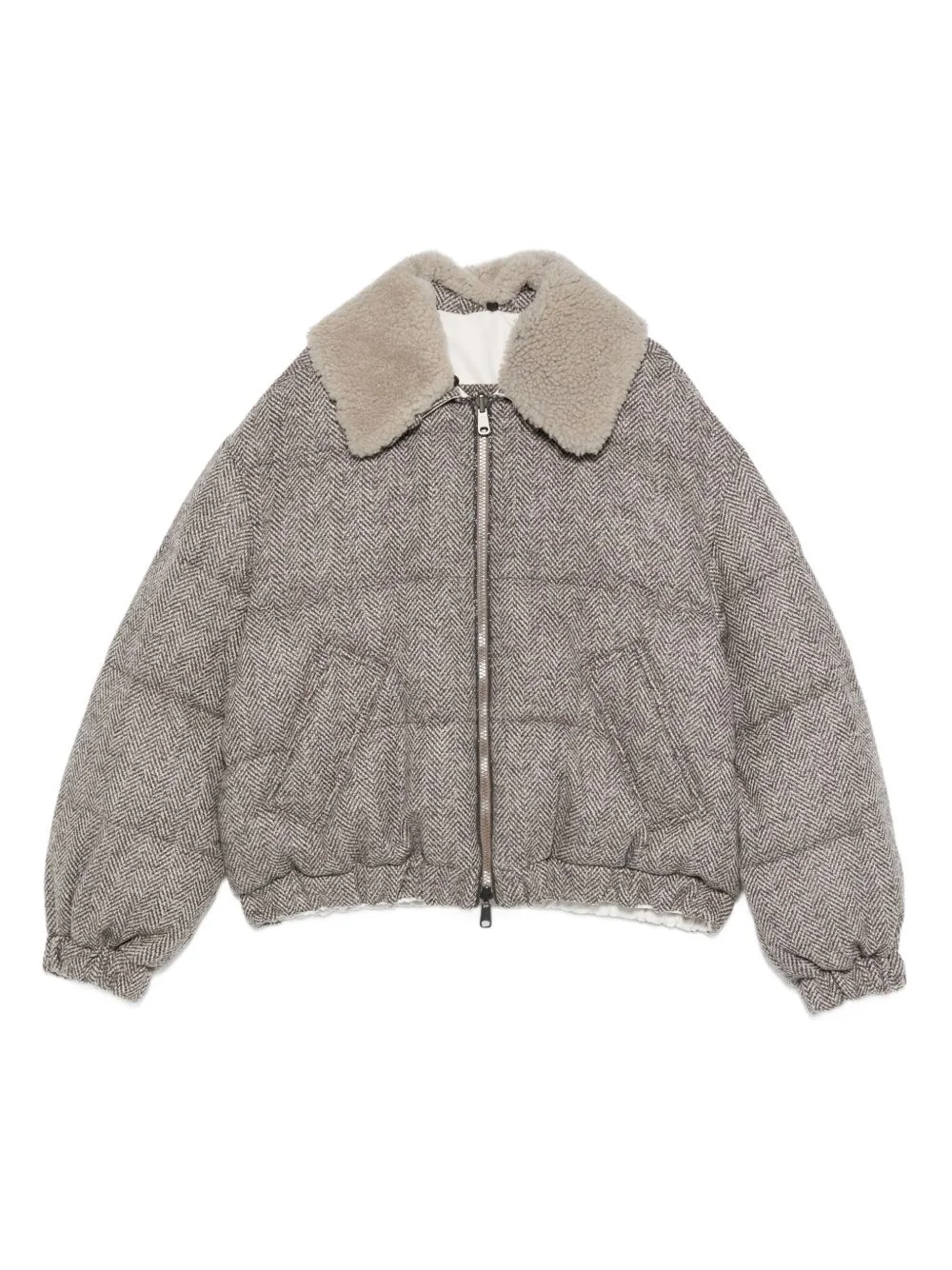 herringbone-pattern shearling-collar jacket Highlights - Grey - Herringbone pattern - Shearling collar - Zip front fastening - Quilted - Welt pockets Made in Italy Composition Fabric 100%, Sheep Skin/Shearling 100% SIZE & FIT Model measurements Height 5 ft 9 in(1.76 m) Bust/Chest 31.49 in(80 cm) Hips 35.03 in(89 cm) Waist 24.8 in(63 cm) Washing instructions Read Manufacturer Guidelines