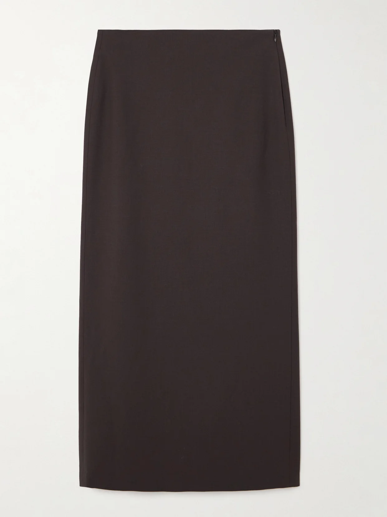 Brunello Cucinelli's pencil skirt is an elegant choice, whether you're in the office or out to dinner. It's been made in Italy from brown wool-blend and has a generous back split.