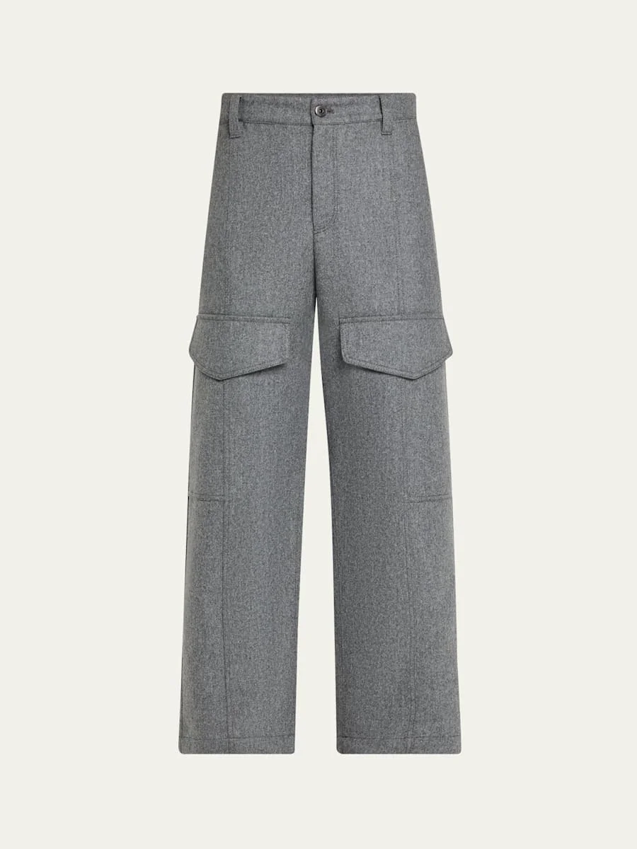 Wool Flannel Wide-Leg Ankle Cargo Pants