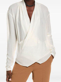draped cowl-neck blouse Highlights - Off-white - Cowl neck - Long sleeves - Wrap effect - Asymmetrical hem - Silk Made in Italy Composition Silk 100% Washing instructions Dry Clean Only
