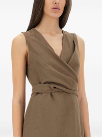 wrap-effect sleeveless dress Highlights - Brown - Wrap effect - Sleeveless - V-neck - Self-tie belt - Side slit Made in Italy Composition Viscose 73%, Linen/Flax 27% Washing instructions Read Manufacturer Guidelines