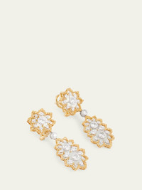 Buccellati earrings from the Rombi Collection Approx. 1.5" drop Polished 18karat yellow gold Diamonds set in 18karat white gold Total diamond carat weight: 1.44 Omega clips with post backs For pierced ears Made in Italy