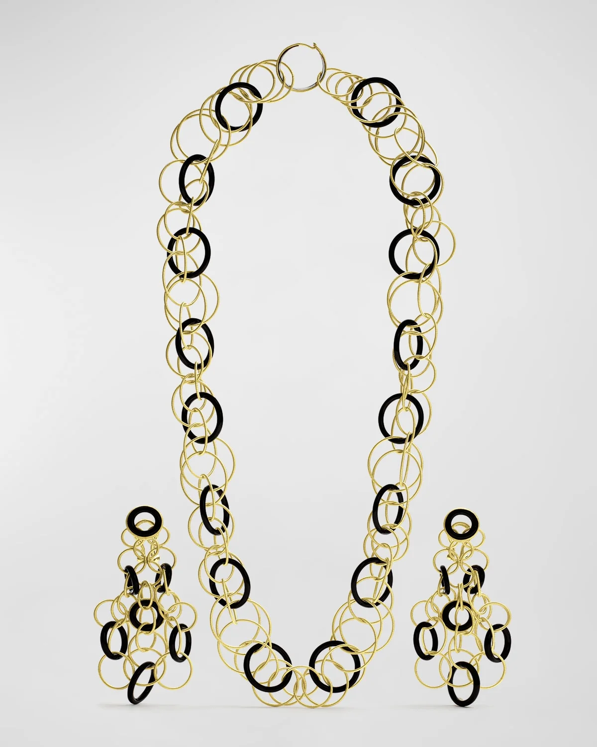Hawaii short necklace by Buccellati. 18karat yellow gold circular links. Interlocking black onyx links. Approx. 19"L.