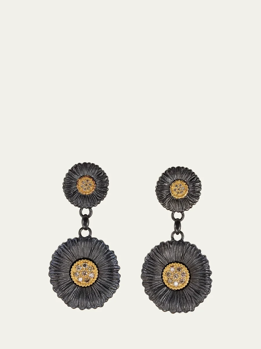Buccellati earrings from the Blossoms Collection Approx. 5cm length Burnished sterling silver and 18-karat gold plating White and champagne diamonds 0.75 total diamond carat weight For pierced ears Made in Italy Online Inquiries: BGS21_PN2A3| Store Inquiries: #4587849