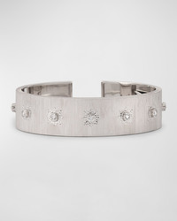 - Buccellati bracelet from the Macri Collection - Approx. 15.5mm wide - 18-karat rhodium-plated white gold - Features a handmade rigato effect - Brilliant-cut diamonds set in star-shaped rosettes - 0.5 total diamond carat weight - Slip-on style - Made in Italy