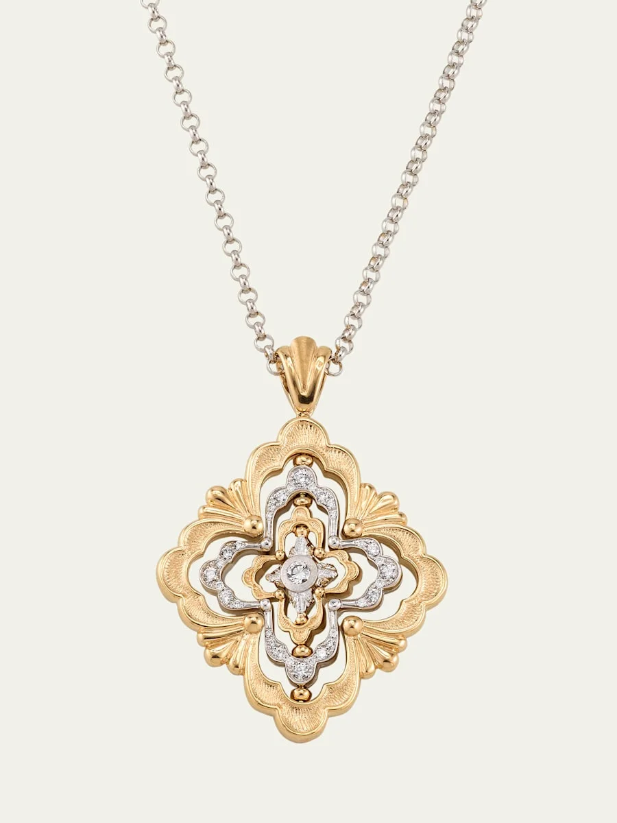 Buccellati pendant necklace from the Opera Galileo Collection Necklace length: approx. 24 inches 18karat solid gold Round white diamonds 0.26 total diamond carat weight Adjustable length Lobster clasp Made in Italy