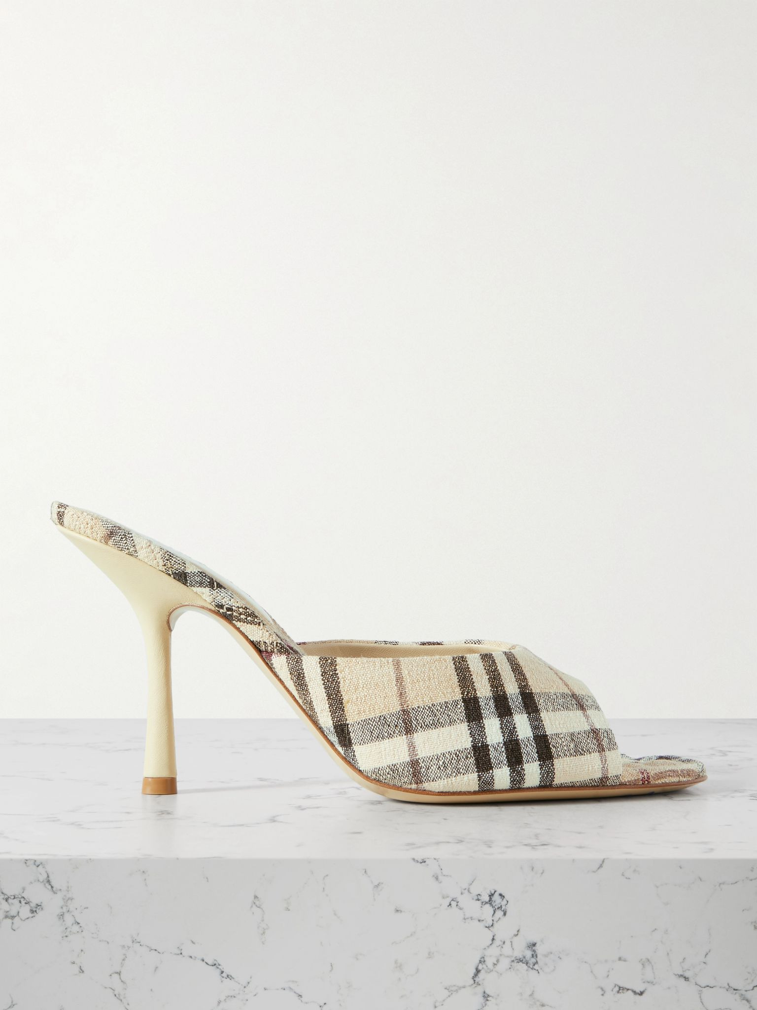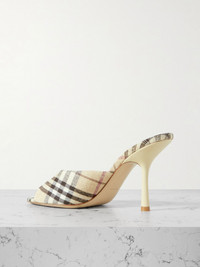 There’s no mistaking Burberry’s iconic checks. These mules have been made in Italy from soft linen mapped with the distinctive pattern and rest on stiletto heels. The square peep-toe profile will frame your pedicure elegantly. Details & Care - Heel measures approximately 90mm/ 3.5 inches - Multicolored linen - Slip on - Designer color: Alabaster IP Check