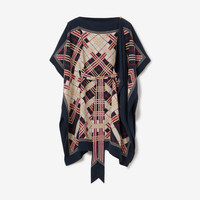 PRODUCT DETAILS An elegant cape in Italian-woven silk twill. The belted silhouette is patterned with a graphic check – a fresh take on an archival design. - 100 x 90cm/39.4 x 35.4in 100% silk Concealed hook-and-eye and button closure Self-tie belt Specialist dry clean Made in Italy Item 80670941