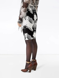 abstract deer print skirt What do you call a deer with no eyes? No eye dear, of course! And that's exactly how we feel about you not having this Burberry deer print skirt in your wardrobe yet - we have no idea. Don't let Bambi down again. Highlights - Black/white - Abstract pattern print - Pencil design - Knee length - Deer pattern Made in Italy Composition Viscose 100% Washing instructions Specialist Cleaning