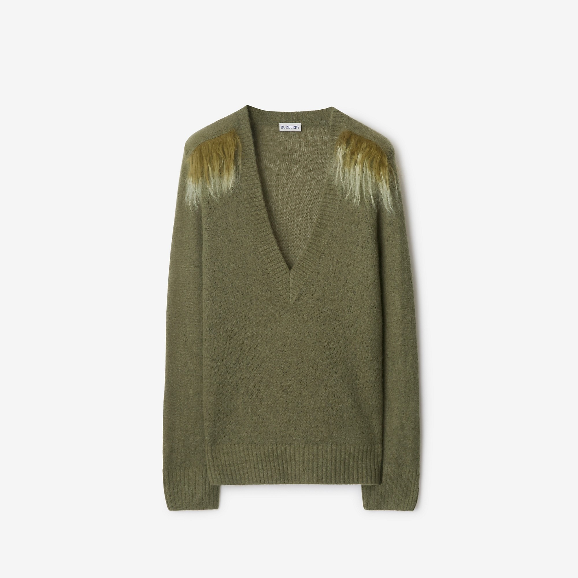 Product Details A sweater made in Italy from a gauzy boiled wool and alpaca wool blend. The deep V-neck style is cut to a regular fit and trimmed with two-tone shearling in the style of epaulettes. - Rib-knit trims - Regular fit. Fits true to size, take your normal size. - Item 80994361 Size & Fit - Length: 63cm/24.8in (size UK S) - Model’s height: 177cm/5ft 10in. Model wears size UK S Fabric & Care - 37% wool, 35% alpaca wool, 28% polyamide - Trims: 35% wool, 33% alpaca wool, 31% polyamide, 1% elastane; 100% real farmed dyed lamb shearling, ovis aries, country of origin: China - Specialist dry clean - Made in Italy