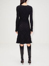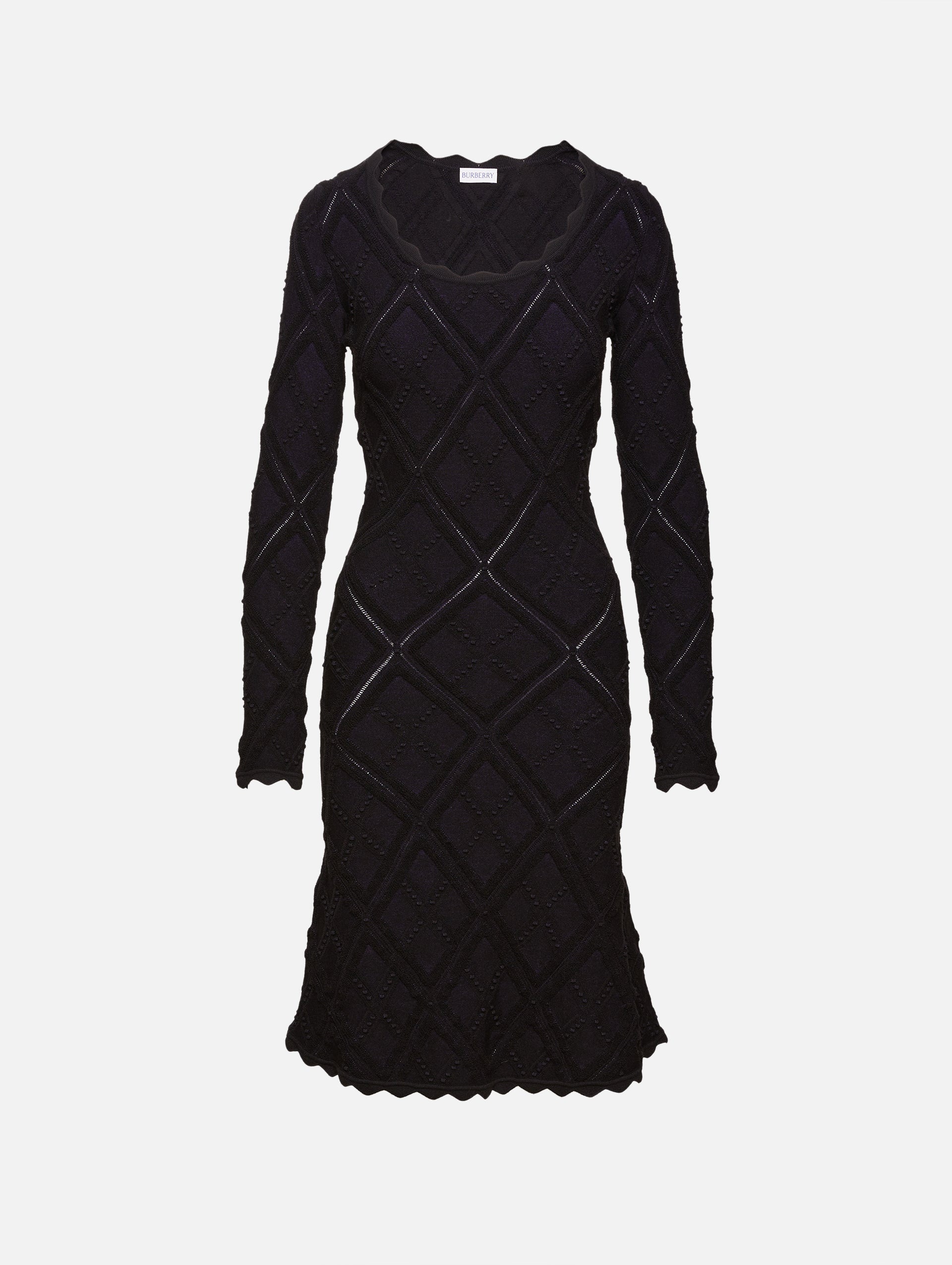 For a knit dress worthy of every winter soireé, reach for Burberry's decadent Aran dress, designed with a scalloped trim, slim silhouette, and intractely woven diamond patterning. Details 72% wool 18% polyamide 9% polyester 1% elastane Made in Italy Dry clean only Item # 1-161569 Designer
